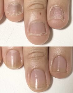 お顔のケアと同じで、一日で劇的な変化が起こるというよりも、日々の生活やお手入れを変えていくことで新しく生えてくる爪を変えていきます。